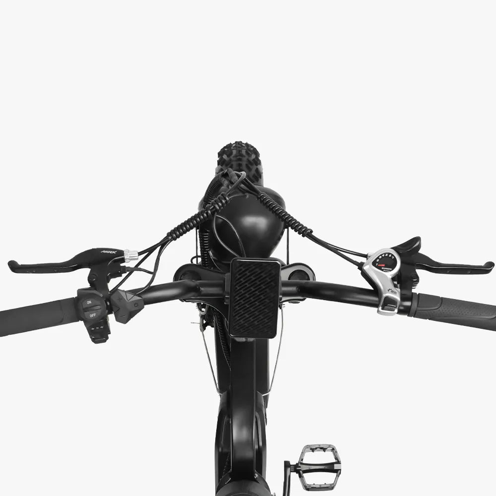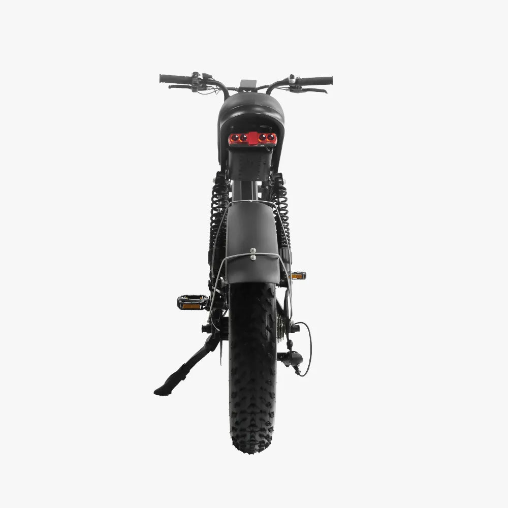 Meet the E7 Fat Tire All-Terrain Electric Bike — an affordable moped-style eBike designed for everyday riding and weekend exploring. The reinforced dual-frame adds extra stability, while the full suspension keeps your ride smooth on uneven roads. With a 720Wh battery that lasts up to 100 km and a complete lighting system for day and night visibility, the E7 is dependable, comfortable, and ready for whatever the road brings.